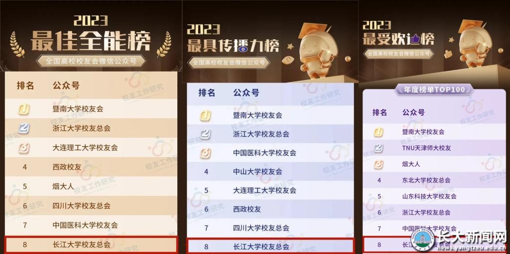 2月28日,“校友工作研究”发布2023高校校友会微信公众号100强榜,我校伟德国际1949官方网站微信公众号在多个榜单中表现优异,在“最佳全能榜”“最具传播力榜”“最受欢迎榜”均位列全国高校第8位。在“最佳全能榜”位列全国省属高校第2位,湖北省高校第1位。